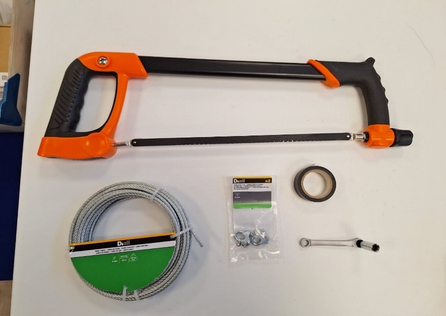 Use the saw to cut the wire to the desired length. The insulation tape will help to stop the ends fraying.