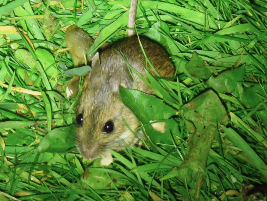 Wood mice have a three-week gestation: ‘first pregnancies evident by April’, says wildlife-online. That is, pregnancies are evident to folk doing capture-mark-recapture studies. Towards the third week of April, in such a study, one might be trapping lactating wood mice. Their litters are likely to starve meantime. So, at Ruthven, where live-trapping has been ongoing over winter (not marking, but almost certainly recapture), it will have to stop soon. In any case it’s rare to have Apodemus indoors here after the weather turns warm, when outdoors is hopping with helpless invertebrate prey.